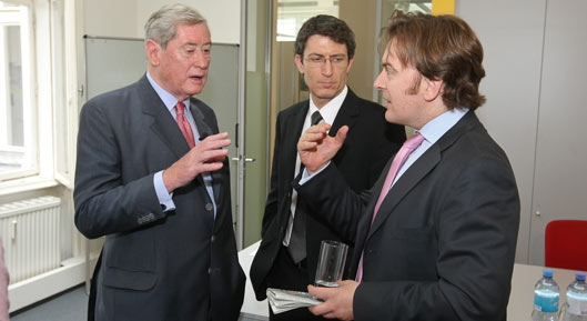 Der angeregten Diskussion widmeten sich Nationalbank-Gouverneur Ewald Nowotny, Gewista-Chef KR Karl Javurek, 3-CEO Jan Trionow, Andreas Theiss von Wolf Theiss, Alpine-Vorstand Christian Trattner, Wien-Holding GF Peter Hanke, Vera Laggner-Kausel - UniCredit Bank Austria AG, Christoph Ronge - Wiener Stadtwerke Holding AG und Dagmar Lang - Geschäftsführerin des Manstein-Verlages.