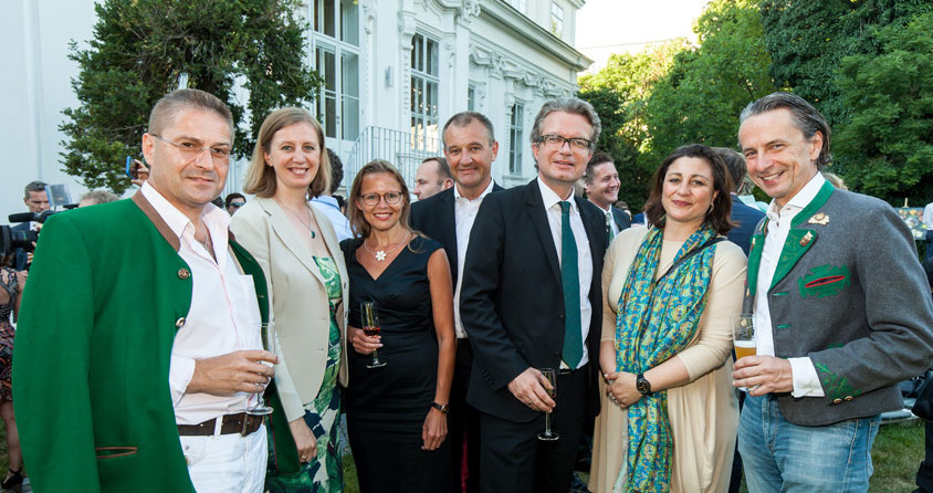 Auf Einladung von Landeshauptmann Hermann Schützenhöfer und den Landesräten Barbara Eibinger-Miedl und Christopher Drexler brachten zahlreiche Gäste beim sommerlichen Empfang im Wiener Palais Schönburg steirisches Flair nach Wien. Gewidmet war der diesjährige Empfang dem steirischen herbst, der heuer sein 50-jähriges Jubiläum feiert. Wie keine andere Institution in Österreich ist er mit dem Begriff der Avantgarde verbunden: Lange bevor die Vernetzung der Künste als Forderung in aller Munde war, integrierte der steirische herbst Kunst, Musik, Performance, Tanz, Theater, Literatur, Architektur, Neue Medien und Theorie. Hervorgegangen aus einem Zusammenschluss verschiedener Institutionen und Veranstaltungsreihen wie der Steirischen Akademie, Trigon oder dem Musikprotokoll hat es das „Festival der Produktion und der Prozesse“ immer wieder geschafft, Vernetzung und Kooperation sowohl internationaler wie regionaler Künstlerinnen und Künstler, Szene und Kontexte zu ermöglichen und erlebbar zu machen.