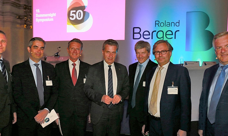 Zum 19. Roland Berger Summernight Symposium fanden wieder Top-Experten aus Politik, Wissenschaft, Wirtschaft und Medien zusammen, um die Auswirkungen der Digitalisierung zu diskutieren. Die hochkarätigen Diskutanten Günther Oettinger, Europäischer Kommissar für Haushalt und Personal, Gottfried Haber, Leiter des Forschungsbereichs Wirtschafts-, Budget- und Finanzpolitik an der Donau-Universität Krems, Johann Strobl, Vorsitzender des Vorstandes der Raiffeisen Bank International AG sowie Alexander Wrabetz, Generaldirektor des ORF erörterten vor vollem Haus „die Perspektiven Europas zwischen Arbeitsmarktflaute und Digitalisierung“. Moderiert wurde der Experten-Talk von den Roland Berger-Partnern Rudolf Kemler und Vladimir Preveden.
