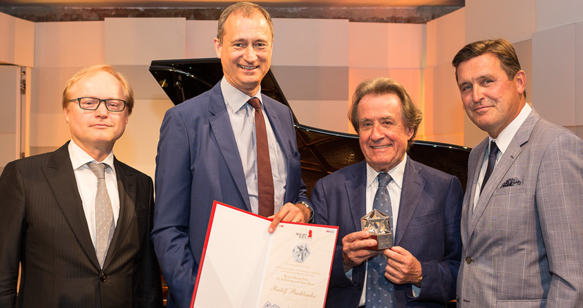 „Der Wiener Mozart Preis für Aufklärung und Neue Ideen rückt Persönlichkeiten, die den Aufklärungs-Gedanken aus der Zeit Mozarts auch heute kritisch weiterführen und sich dazu engagieren, in den Mittelpunkt. Der Preis ist eine gute Möglichkeit, Verdienste um Kunst und Kultur in Wien entsprechend zu würdigen“, betonte Wiens Kulturstadtrat Andreas Mailath-Pokorny, der die Auszeichnung an Rudolf Buchbinder übergab.