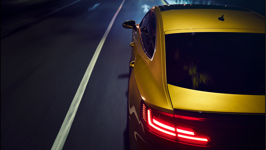 Die Heckpartie folgt dem Vorbild klassischer Sportwagen, die Schulterpartie gleicht einem athletischen Muskel. Und die Silhouette? Sie ist souverän – elegant, flach, coupéhaft. „Der Arteon vereint die Designelemente eines klassischen Sportwagens mit der Eleganz und dem Raumangebot eines Fastbacks. Ein avantgardistischer Business-Class-Gran-Turismo, der gleichermaßen Herz und Verstand berührt“, bringt VW-Chefdesigner Klaus Bischoff das kraftvolle und beeindruckende Design auf den Punkt. Besonderes Plus: Durch die hohe Karosseriesteifigkeit überzeugt der Arteon mit einer optimalen Fahrdynamik und einer hervorragenden Lenkpräzision.