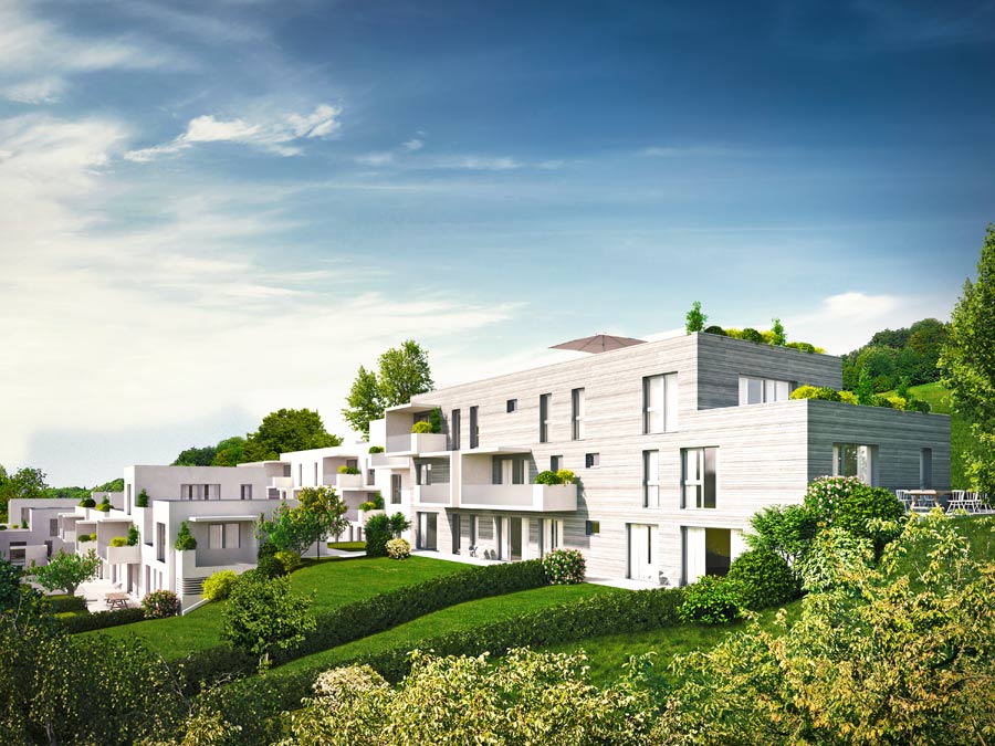 Das moderne Wohnkonzept der Anlage bietet Freiräume, Plätze und Grünoasen, die zum Verweilen einladen. Die unterschiedlichen Höhen der Baukörper und der Hanglage ermöglichen aus allen Ebenen einen freien Blick auf die Stadt Salzburg und die Gebirgslandschaft im Westen sowie auf den Gaisberg im Süden. Buchstäblich vor der Haustüre der Wohnbauanlage liegt das malerische Salzkammergut, dessen Berge und Seen mit einer Vielzahl an Sport- und Freizeitangeboten locken.