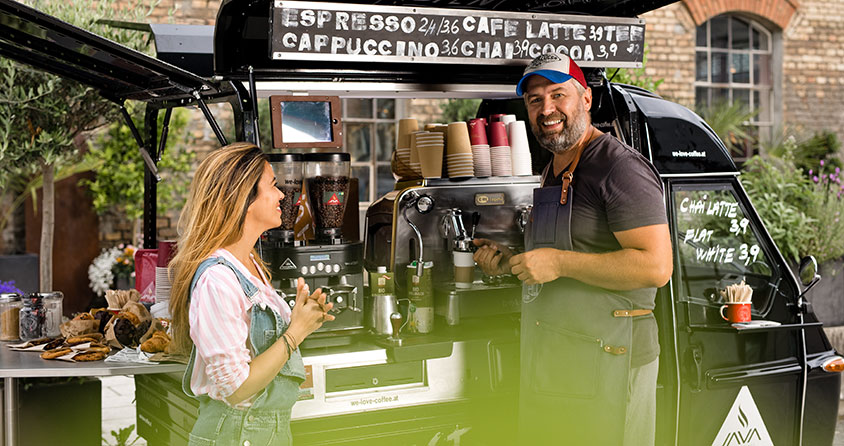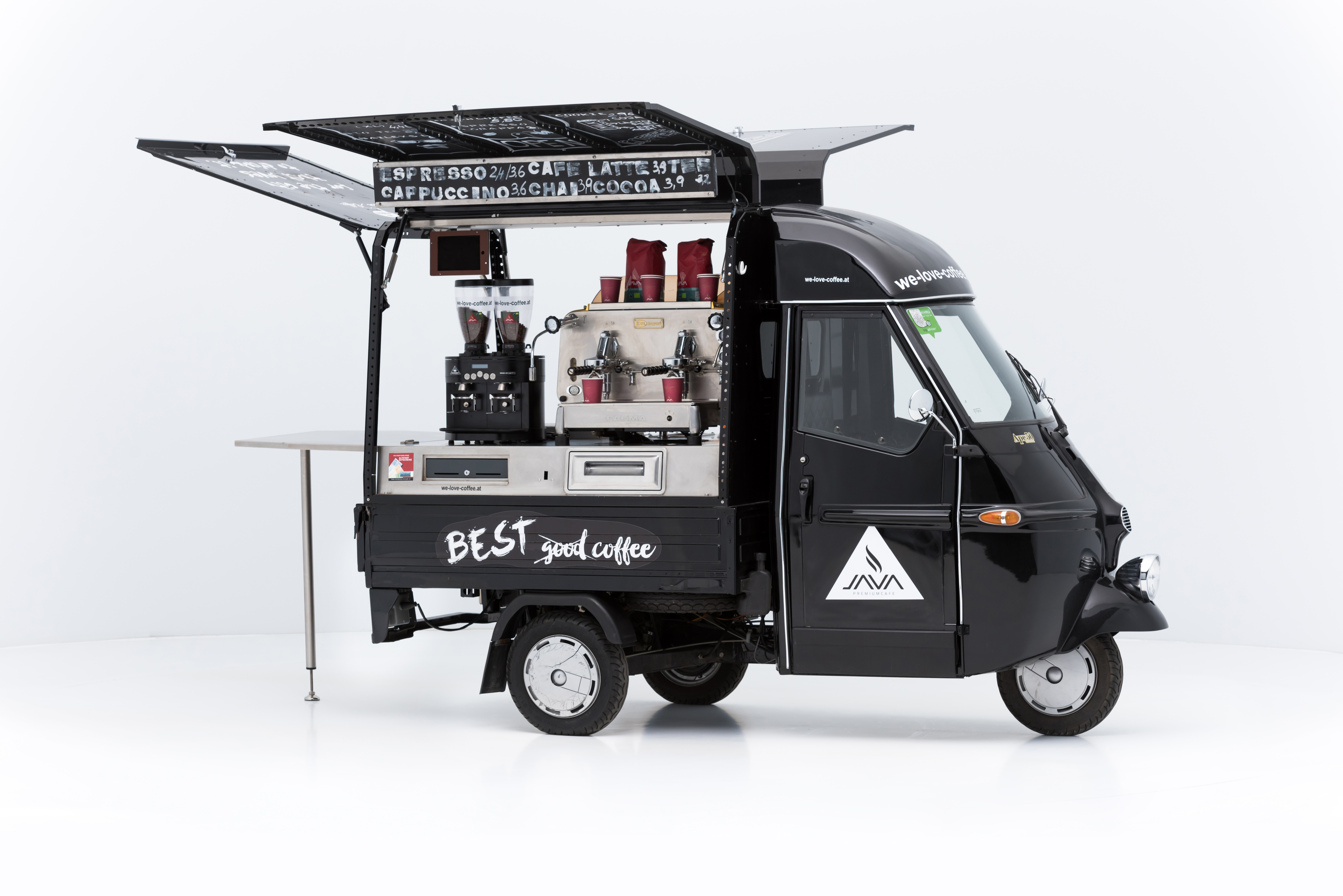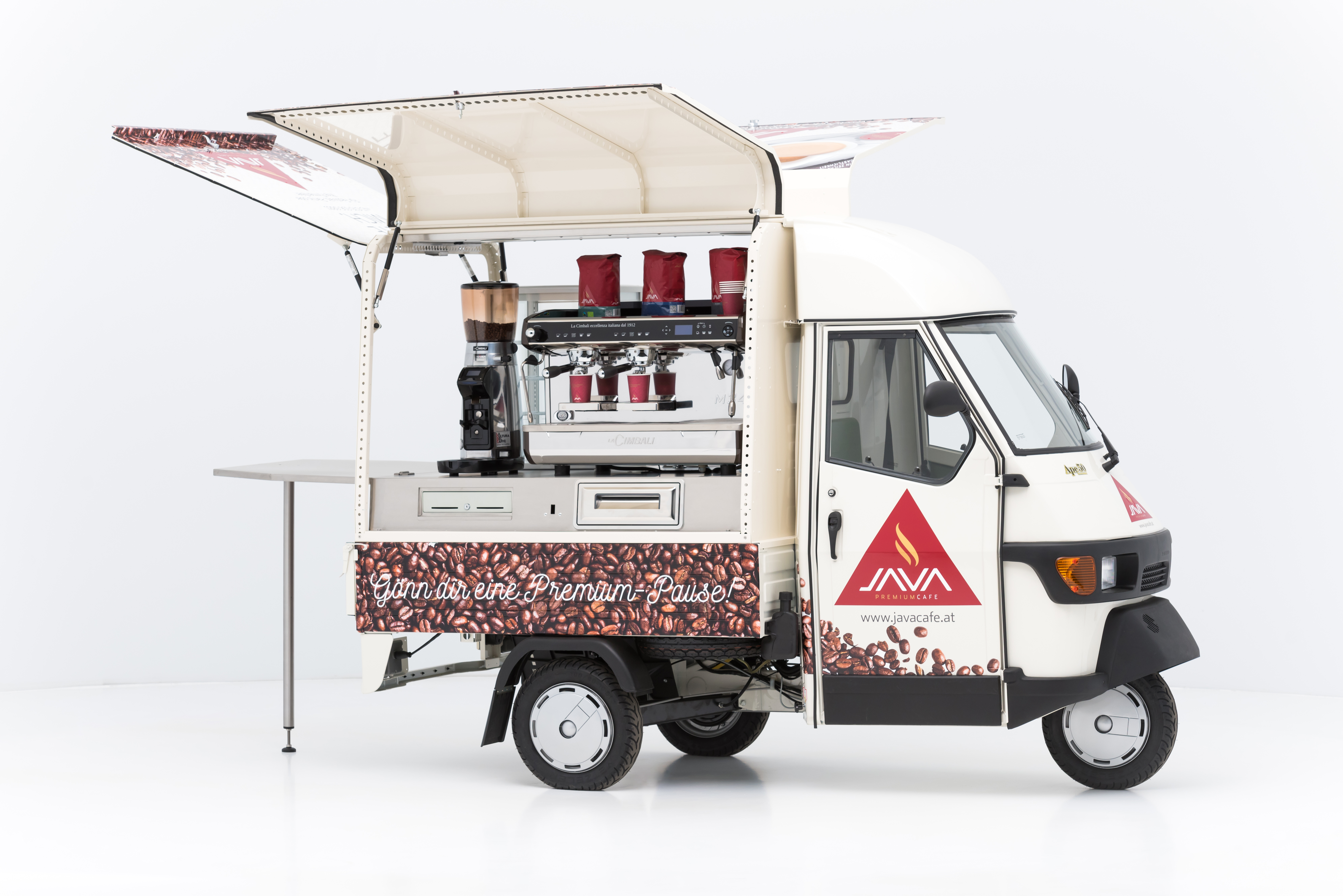 JAVA vermietet trendige Café-Mobile für den optimalen Outdoor-Kaffeegenuss. Damit punkten Gastronomen und Eventmanager bei Veranstaltungen, Streetfood-Festivals, Messen, Firmenfeiern oder Roadshows mit frischem Kaffee in bester Qualität und einem stylischen Eyecatcher.