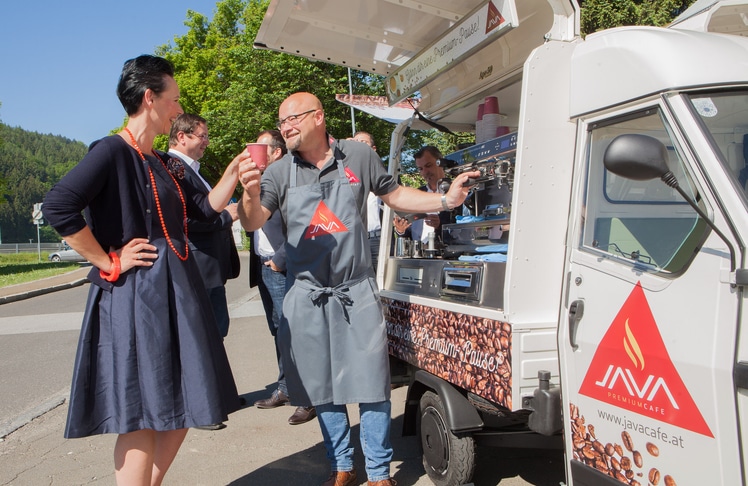 Das Rundum-Sorglos-Paket von JAVA: Ein eigener Barista bedient die Kaffee-Apen; der Anhänger kann auch für den Self Service Betrieb gemietet werden. Die Café-Mobile sind in ganz Österreich verfügbar, Anfragen unter www.javacafe.at/cafemobile oder unter office@javacafe.at.