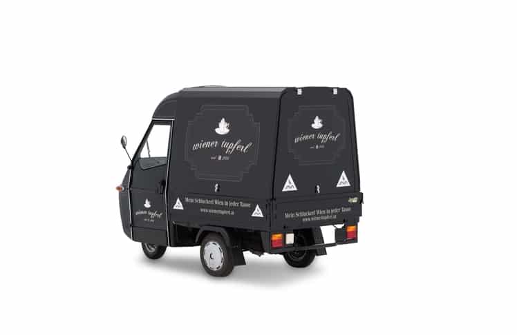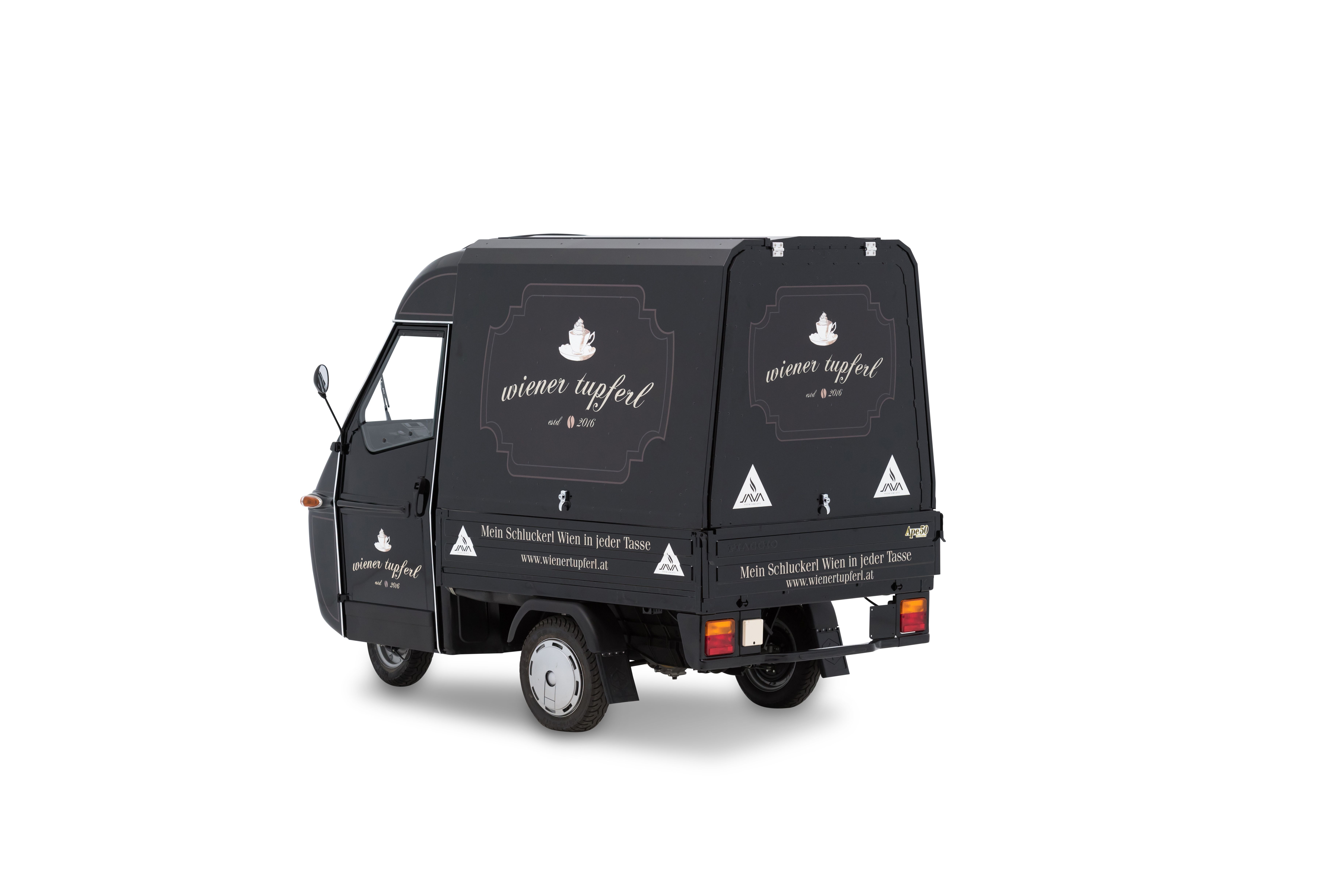 Zur Auswahl stehen fünf Apen – die „Bienen“ wie sie in Italien heißen sind 3rädrige Vespacars mit Kultstatus – in schwarz, weiß und mint sowie ein Anhänger. Ab Herbst ergänzen ein Lastenrad und ein Leiterwagen das Angebot. Je nach Kundenwunsch und Art der Veranstaltung bietet sich die schwarze Ape „Styla“ mit moderner Beklebung, die weiße Ape „Typica“, die Nostalgie-Charme aus „Bella Italia“ verströmt, oder aber die mintfarbige „Mocape“ an. Mit dem robusten JAVA-Anhänger „Hänga“ sind Veranstalter besonders flexibel: Denn der mobile Stand kann einfach mit dem PKW transportiert werden.