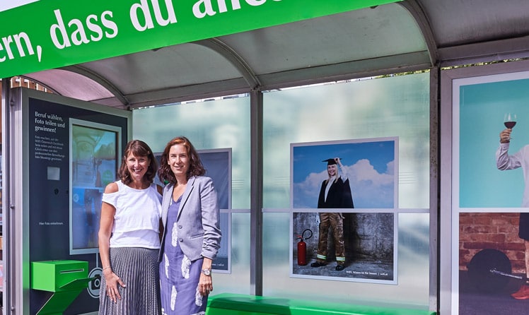 In eine City Light-Vitrine ist ein Touchscreen eingebaut, über den man Berufe auswählen und Fotos von sich machen kann, die in Folge auf dem Screen dargestellt werden. Man sieht seinen Oberkörper dann, je nach Auswahl, beispielsweise mit dem Unterkörper eines Yogalehrers kombiniert. Das gewählte Foto kann auch vor Ort mittels Dispenser ausgedruckt und direkt per Mail versandt werden. Danach erhält man ein E-Mail mit dem Foto und dazugehöriger Facebook-Verlinkung. Teilt man diese auf der Facebook Seite von WIFI Österreich, hat man die Chance eines von drei professionellen Fotoshootings für ein Bewerbungsfoto zu gewinnen. Um die WIFI gebrandete Wartehalle atmosphärisch noch zu unterstreichen, ist eine an der Wartehalle befindliche Bande mit der Aufschrift „Lern, dass du alles aus dir machen kannst.“ und eine in WIFI-grün gehaltene Sitzbank angebracht.