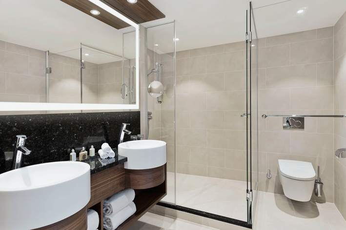 So wurde das Hauptaugenmerk auch auf die Vergrößerung und Umgestaltung der Badezimmer gelegt, die Wannen und Duschen wurden den Anforderungen des anspruchsvollen Gastes angepasst. „Neunzig Prozent der Zimmer wurden von Badewanne auf Duschen umgestellt“, so Wilhelm Redl, der als Technischer Leiter des Vienna Marriott Hotel bereits seinen vierten und bislang größten Umbau hinter sich hat. „Es zeigt sich, dass ein Großteil der Gäste heutzutage lieber duschen als baden, deshalb haben wir die Bäder dahingehend adaptiert.“ Lediglich Gäste aus dem asiatischen Raum bevorzugen nach wie vor, in einer Wanne zu relaxen.