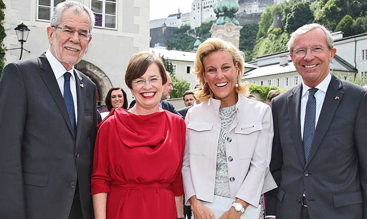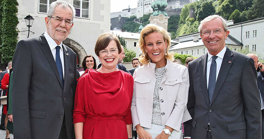 Am Vorabend der offiziellen Eröffnung hatten sich prominente Persönlichkeiten aus Politik, Wirtschaft und Kultur im Schloss Leopoldskron eingefunden. An dem Galadiner der Internationalen Salzburg Association (ISA) nahmen unter anderem Van der Bellen, Vizekanzler Wolfgang Brandstetter, die Minister Andrä Rupprechter und Harald Mahrer, Pianist Rudolf Buchbinder, Festspielpräsidentin Helga Rabl-Stadler, Fürstin Manni zu Sayn-Wittgenstein-Sayn, Schauspielerin Sunnyi Melles, die Mediamarkt-Gründer Erich und Helga Kellerhals, Siemens Österreich-Vorstandsvorsitzender Wolfgang Hesoun, Unternehmer Ernst Theodor Henne, die Hoteliers Elisabeth Gürtler und Georg Imlauer, Opernballorganisatorin Maria Großbauer, Festspielintendant Markus Hinterhäuser sowie der kaufmännische Direktor der Festspiele, Lucas Crepaz.