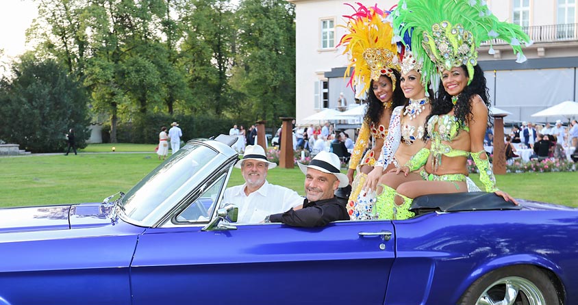 In diesem Jahr stand Kuba im Fokus. Eröffnet wurde die „kubanische Nacht“ von zwei gebürtigen Kubanern, die im Rahmen des Austauschprogramms der Stiftung Mozarteum zurzeit in Salzburg zu Gast sind. Mit Stücken von Ignacio Cervantes, José White und Dámaso Pérez Prado –gespielt auf Violine und Cello – erfüllten rhythmische Klänge gleich zu Beginn das Kavalierhaus. Von der tollen Stimmung inspiriert, posierten zahlreiche Gäste stilecht mit Zigarre und Strohhut vor dem 1968er Ford Mustang Cabrio und dem 1979er Ford Thunderbird der American Drivers Pinzgau, die extra für das conova Sommerfest angereist waren.