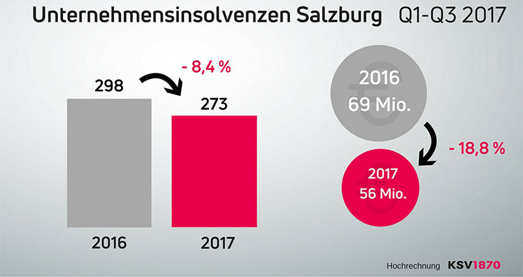 In den ersten drei Quartalen kam es zu 273 Firmenpleiten – das ist ein Minus von 8,4 Prozent. Diese Entwicklung deckt sich mit den bundesweiten Ergebnissen – auch hier sind die Fälle (- 4,8 %) rückläufig. Bei den Privatkonkursen zeigt sich, dass die Konsumenten abwarten – das hat in den ersten drei Quartalen zu 243 Fällen geführt und damit zu einem Minus von 14,4 Prozent. Grund für den Rückgang dürfte die Novellierung des Privatkonkursrechts sein.„Wir gehen davon aus, dass die Konsumenten momentan bewusst abwarten, da das neue Privatkonkursrecht am 1. November in Kraft tritt – dieses sieht für Schuldner Erleichterungen, aber auch neue Verpflichtungen vor. Die Verkürzung des Abschöpfungsverfahrens von sieben auf fünf Jahre und der Wegfall der 10-%-Quote dürften wesentliche Motivatoren für das Zuwarten sein“, so der Leiter der KSV1870 Standorte Otto Zotter. (jw)