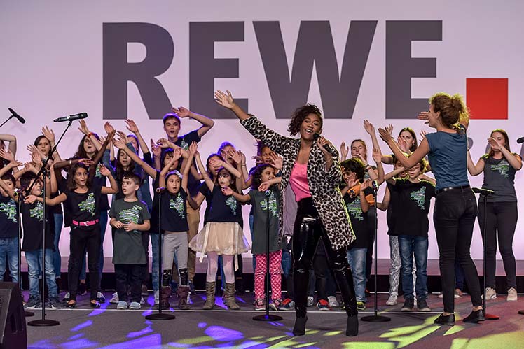 Der Genetiker Markus Hengstschläger machte es sich im Rahmen des Abends zur Aufgabe, stellvertretend für die 1.500 Anwesenden, die brennendsten Fragen zur Staffelübergabe, aber vor allem auch zu den Erwartungen und Visionen für die Zukunft, an die Führung der REWE International AG in Österreich zu adressieren. Ein besonderer Höhepunkt war der gemeinsame Auftritt der Kinder des Projektes „Lernen macht Schule“ mit der jungen Soul-Sängerin Rose May Alaba, die auf diese Weise ihren Einstand als diesjährige „Lernen macht Schule“-Botschafterin feierte.