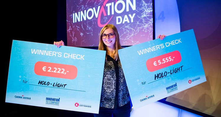 Ein besonderes Highlight des diesjährigen Innovation Day war das Finale von "Innovation to Company" der Wirtschaftskammer Wien. Die Casinos Austria und Österreichische Lotterien Gruppe nahm an der dritten Auflage dieser Start-up-Challenge teil und suchte Start-ups aus dem Bereich Virtual Reality, Augmented Reality und Mixed Reality für die Zusammenarbeit. Bereits am Vortag des Innovation Day fand der Innovation-Pitch statt, bei dem die beiden Finalisten Black Cell und Holo Light ihre Konzepte präsentierten. Beim Innovation Day selbst entschied das Publikum nochmals. Bei beiden Pitches überzeugte Holo Light mit dem innovativen Konzept für das Casino und erhielt das Preisgeld von 7.777 Euro überreicht.