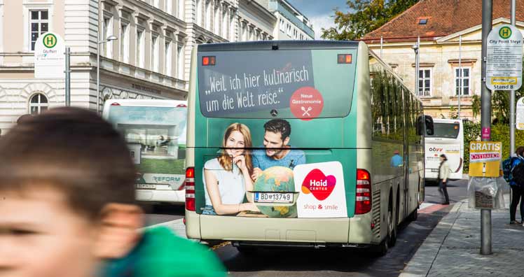 "Außenwerbung ist für uns eine hervorragende Möglichkeit unser Zielpublikum anzusprechen und über Aktionen im Center zu informieren. Zusätzlich zur Bus- und Bahnwerbung haben wir aktuell auch Citylights und 16- bzw. 24-Bogen Plakate im Einsatz", erklärt Center-Manager Hans Koini die Werbeaktivitäten des Unternehmens.