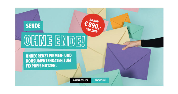 Mailings sind nach wie vor effiziente Marketing-Instrumente – vorausgesetzt natürlich, die jeweilige Zielgruppe ist professionell analysiert und die Kontaktdaten sind korrekt. HEROLD erleichtert den Einstieg ins professionelle Direkt-Marketing mit einer Flatrate für die Verwendung seiner Business- und Consumer-Daten.