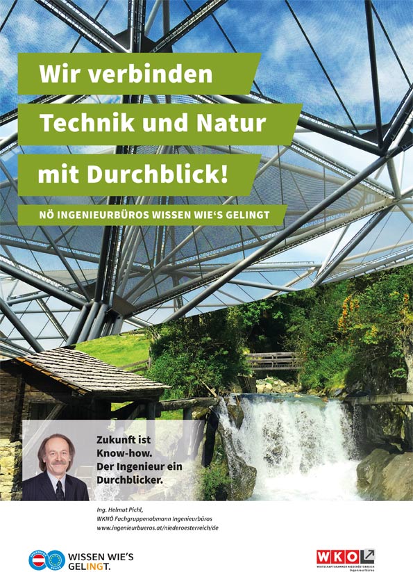 Die 1.000 aktiven niederösterreichischen Ingenieurbüros haben sich zum größten gemeinsamen Nenner unter der Marke „Wir verbinden Technik und Natur mit Durchblick!“ committed.