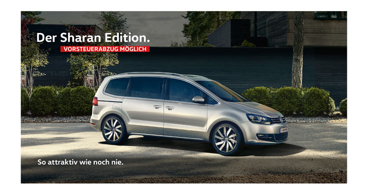 Eine ganz besondere Rolle kommt dem Modell Sharan Edition zu, denn dieser ist jetzt bereits ab € 23.990,-* erhältlich. Für Unternehmen ist zusätzlich noch der Vorsteuerabzug möglich, was ihn zu einem attraktiven Firmenfahrzeug macht.