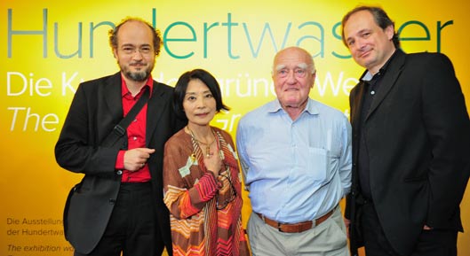 Mit der Ausstellung würdigt das Museum den Künstler, der die Philosophie und geistige Grundlage des Kunsthauses wesentlich geprägt hat. Neben Schlüsselwerken Hundertwassers wie "Die Häuser hängen unter den Wiesen", "Kleiner Palast der Krankheit" oder "Der Garten der glücklichen Toten" , sowie Fotoserien von Fotografen wie Manfred Bockelmann, Franz Hubmann, Robert Lebeck, Erich Lessing, Stefan Moses und Christian Skrein werden auch diverses dokumentarisches Material wie Plakate oder Audioaufnahmen, Ausschnitte aus Peter Schamonis Film "Hundertwassers Regentag", sowie Zitate von Zeitgenossen wie Ernst Fuchs, Walter Koschatzky oder Bernd Lötsch gezeigt. Durch die Ausstellung führten Franz Patay - Direktor Kunst Haus Wien und Andreas Hirsch - Kurator Kunst Haus Wien.
