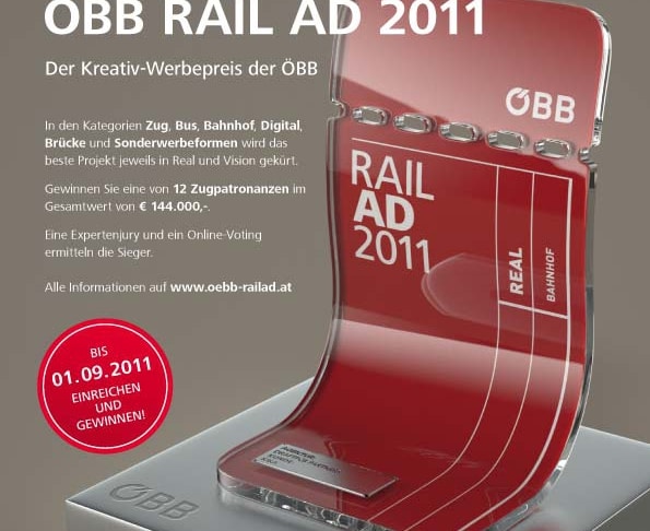 Alle werbetreibenden Unternehmen, Werbeagenturen und Mediaagenturen können für ihre Auftraggeber, mit Sitz in Österreich, beim "ÖBB RAIL AD 2011" mitmachen. Die Teilnahme ist kostenlos, eingereicht werden kann bis 1. September 2011 unter www.oebb-railad.at. (red)