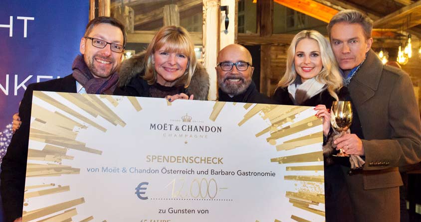 "Das Moët & Chandon Winter Chalet war für uns und die Gastronomie Familie Barbaro von Beginn an ein Herzensprojekt und stand ganz im Zeichen von 45 Jahre Licht ins Dunkel. Das Engagement von allen Beteiligten war überwältigend und übertraf alle Erwartungen. Pro ausgeschenktem Glas ging ein Euro an Licht ins Dunkel. Die daraus resultierende Gesamtsumme wurde von Moët Hennessy Österreich verdoppelt und zusätzlich durch Ernst Ranftl von Hütte & Co, ohne zu zögern, aufgestockt. Wir freuen uns daher über die Maßen, einen Scheck über 12.000 Euro an Licht ins Dunkel überreichen zu dürfen.“ Freut sich Markus Ferrigato.