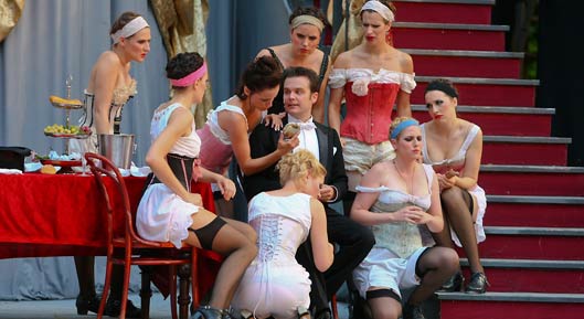 Mit der Csárdásfürstin wurde der heurige Operettensommer im Schlosspark Theresianum eingeläutet. Ein großartiges Orchester und stimmgewaltige Sänger in prächtigen Kostümen haben für große Begeisterung unter den Besuchern gesorgt. Das Intendanten-Ehepaar Nessy/Windberger, das sich schon im Vorfeld entschlossen hat, die diesjährigen Einnahmen an "Pfoten mit Herz" zu übergeben, konnte durch besonders berührende Worte das Publikum überzeugen, diesen gemeinnützigen Verein zu unterstützen.