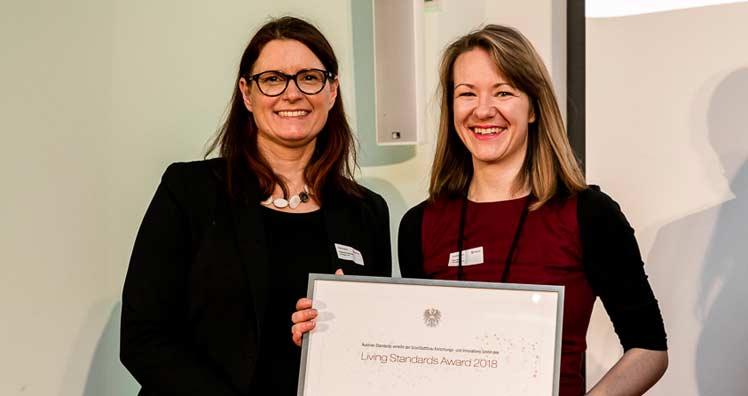 Last but not least konnte sich auch die GrünStattGrau Forschungs- und Innovations GmbH über die Verleihung des Living Standards Award freuen. GrünStattGrau ist das erste Innovationslabor und die Kompetenzstelle für die grüne Stadt der Zukunft. Ziel ist die durchgängige Begrünung von Stadtquartieren durch gezielte Gebäudebegrünungs-Maßnahmen, um das Mikroklima der Stadtteile zu verbessern. "Mehr Grün kann ganze Städte kühlen helfen, zum Artenschutz beitragen und trotz verdichteter Bauweise sozialen Benefit erhalten und schaffen", erklärt Vera Enzi, die technische Geschäftsführerin von GrünStattGrau.