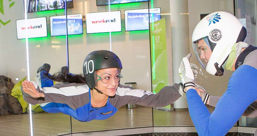 Der heurige Neujahrsvorsatz bei Weekend, “Hoch hinaus!", sorgte für einen ganz besonderen Start ins neue Jahr 2018: Das Lifestyle-Magazin lud zum exklusiven "Weekend Neujahrsflug" in den Wiener Prater. Das Kundenevent im Zuge des Weekend Adrenalinclubs begeisterte die zahlreichen Gäste mit einem Windobona Indoor Skydiving-Flug: Bei Windgeschwindigkeiten bis zu 280 km/h genossen die Teilnehmer einen "Fallschirmsprung" im Windkanal.
