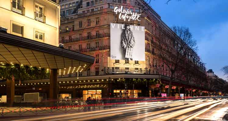Megaboards am Mailänder Dom und auf den Galeries Lafayette in Paris