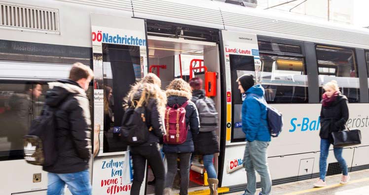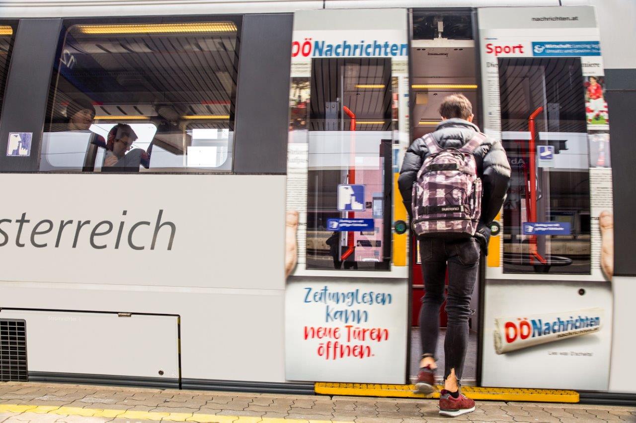 „Das Türbranding ist eine kreative und aufmerksamkeitsstarke Alternative zum klassischen Plaka. Die hohe Frequenz an den Bahnhöfen und die Mobilität des Werbeträgers machen diese Form der Werbung für uns besonders attraktiv. Das außergewöhnliche Format sichert eine hohe Aufmerksamkeit. Unterstützt wird das Tür-Branding mit Zugpostern in den Zügen selbst. Konkret weisen wir begleitend das digitale Angebot der OÖNachrichten hin." so Eidenberger.