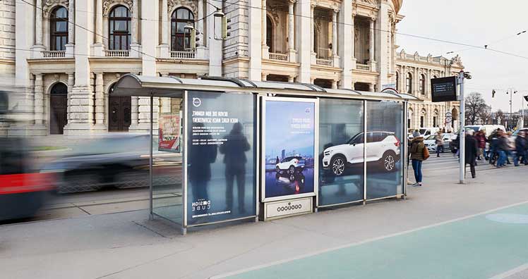 Zur Bewerbung des neuen Volvo XC40 setzt der schwedische Autobauer in Wien auf ein Wartehallenbranding mit City Light, das Passanten mit in Echtzeit adaptierten Botschaften in den Volvo Design Cube an der Wiener Ringstraße beim Rathaus einlädt. Initiiert als First Mover-Aktion wurde die Kampagne von Mindshare gemeinsam mit der Gewista. Für die kreative Umsetzung zeigt die Werbeagentur FUEL verantwortlich.
