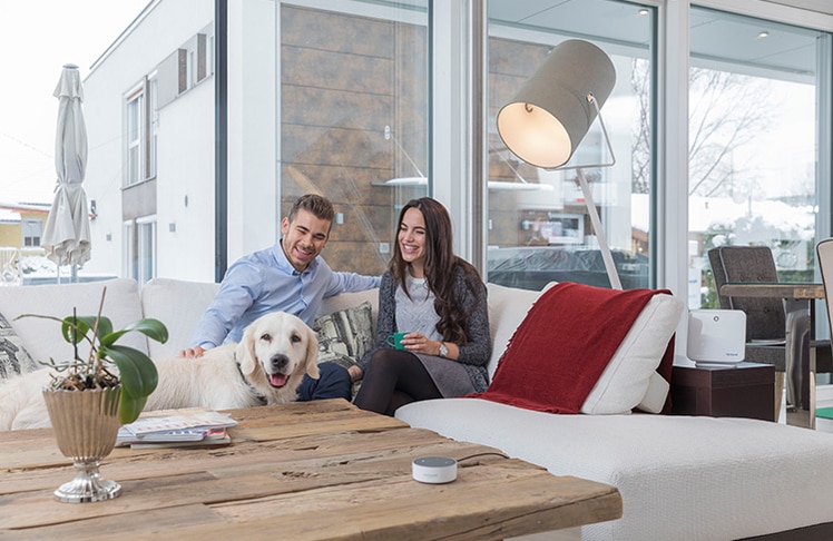 Durch die Verknüpfung von Aktoren und Sensoren, wird eine intelligente Automatisierung mit wenigen, einfachen Schritten möglich. Mit Eco-Home zieht auch mehr Sicherheit ein. Tür- und Fensterkontakte sowie Bewegungsmelder registrieren sofort, wenn sich ungebetene Gäste Zutritt verschaffen wollen. Alarmmeldungen per SMS oder E-Mail informieren, wenn daheim etwas Unvorhergesehenes passiert. Weitere Sensoren alarmieren bei Rauchentwicklung oder Wassereintritt.