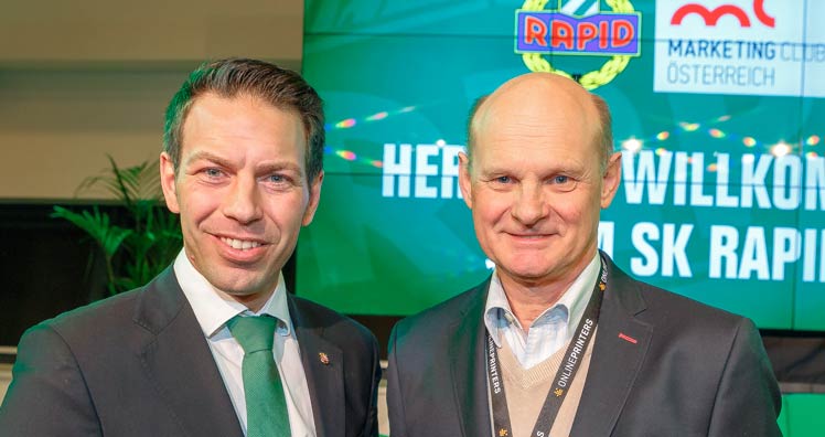 150 interessierte Mitglieder folgten der Einladung des Marketing Club Österreich (MCÖ) zum Clubabend beim SK Rapid Wien im Allianz Stadion. Am Programm stand eine Führung durch das Stadion und eine spannende Diskussion rund um Sportmarketing. Interessante Stationen der Führung durch das Stadion waren der bekannte interreligiöse Andachtsraum mit der Statue des Heiligen Luigi Scrosoppi, Schutzpatron aller Fußballer, das großzügige Medienzentrum, die Kabinen und die Schlachtrufe an den grünen Wänden am Weg Richtung Rasen.