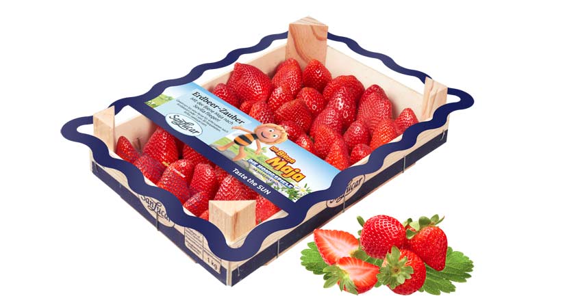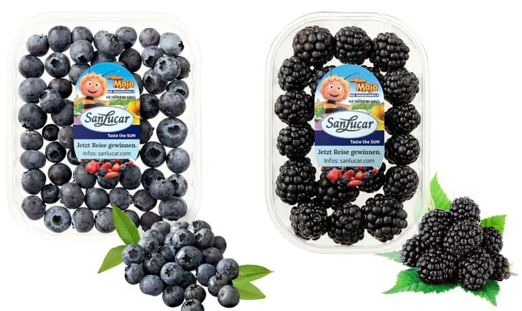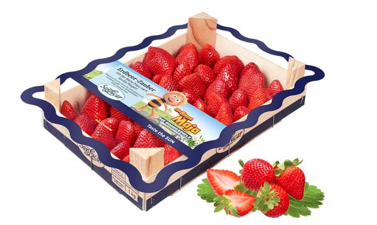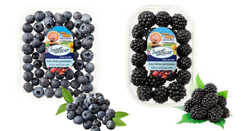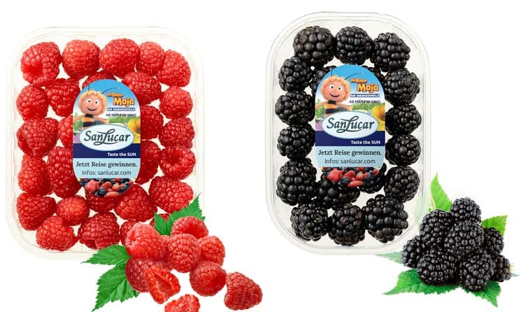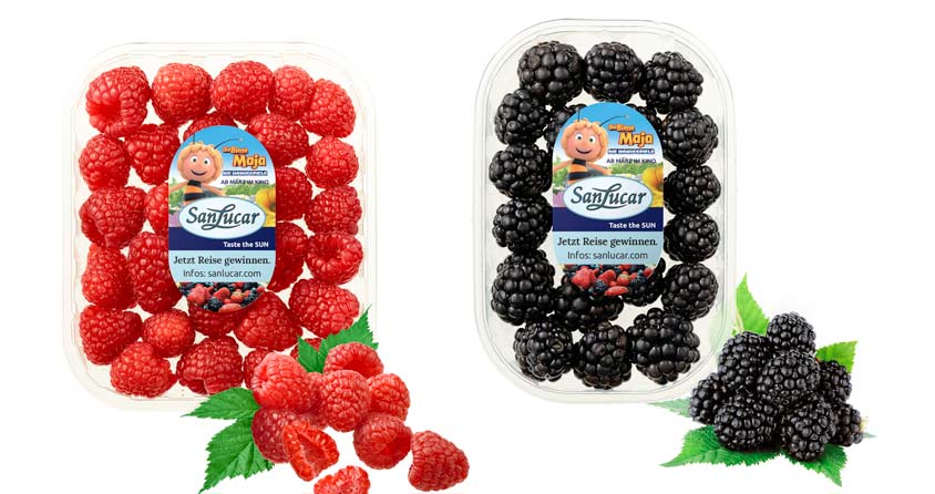 Rechtzeitig zum Kinostart der neuesten Studio 100 Produktion "Biene Maja – die Honigspiele" zeigt SanLucar die Kult-Biene auf den Etiketten der Premium-Obstsorten Erdbeere, Himbeere, Brombeere und Heidelbeeren.