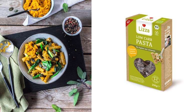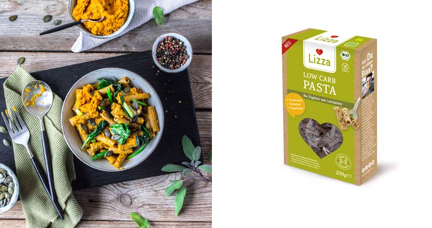 Mit zu 100 Prozent aus Biologischem Anbau gewonnenen Leinmehl, Flohsamenschalenpulver, weißem Bohnenmehl und Kürbiskernprotein hat Lizza gerade mal zwölf Prozent Kohlenhydrate und und schmeckt jederzeit als klassische Pasta mit Sauce, als Beilage oder als Auflauf. Zusätzliches Plus: Die Low Carb-Innovation in nur fünf Minuten gar und essfertig. (jr)