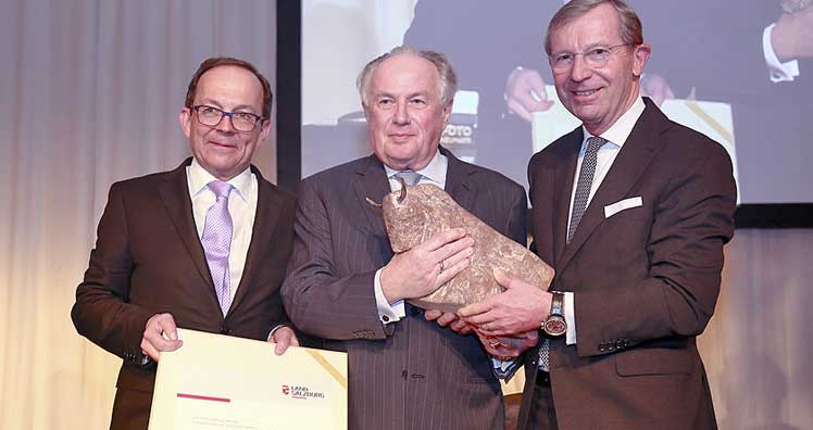 Über die Auszeichnung darf sich heuer Franz Bernhard Humer freuen. "Ihn verbindet mit Salzburg ein starkes Band. Er fördert junge Wissenschafter und ist ein großer Freund der Festspiele", sagt Landeshauptmann Wilfried Haslauer. Als Trophäe hat der Preisträger einen echten "Salzburger Marmorstier" von Landeshauptmann Wilfried Haslauer überreicht bekommen. "Franz Humer hat den Weg in die weite Welt beschritten. Er führte mit Hoffmann-La Roche einen Konzern mit 95.000 Mitarbeiterinnen und Mitarbeitern und 53 Milliarden Schweizer Franken Umsatz und ist in den Verwaltungsräten vieler Großkonzerne sowie globaler Unternehmen tätig. Die Wurzeln in Salzburg hat er nie aufgegeben", so der Landeshauptmann weiter.