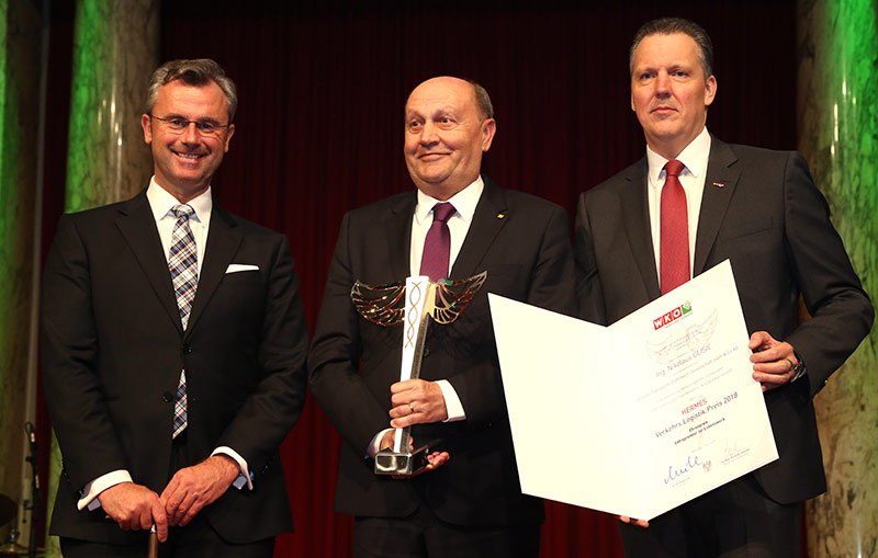 Beim Galaabend der "Österreichischen Verkehrs- und Logistikwirtschaft" - initiiert von der WKO Bundessparte Transport und Verkehr in Kooperation mit dem Logistik Kurier- zeichnete Bundesminister Norbert Hofer gemeinsam mit Bundesspartenobmann Alexander Klacska in der Wiener Hofburg heimische Unternehmer mit dem "HERMES Verkehrs.Logistik.Preis 2018" aus.