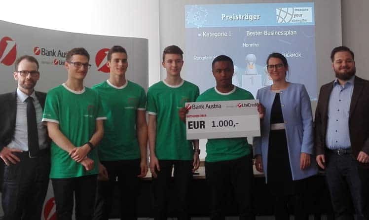 Die eingereichten Geschäftsideen und -konzepte von über 500 deckten auch heuer eine große Bandbreite an Themen ab: In der Kategorie "Bester Businessplan" ging der erste Platz an die Gruppe "Normfrei" der BHAK Vöcklabruck. Mit ihrem nachhaltigen Konzept zur Verwertung von nicht "normgerechten" Lebensmitteln konnten sie die Jury von sich überzeugen. Den zweiten Platz belegte die Gruppe "Parkplatz Sharing" des IBC Hetzendorf aus Wien mit der Idee zu einer App, die beim Finden von freien Parkplätzen nach dem Motto "FLOTT find a LOT" helfen soll. Ebenfalls am Podest landete das Team "Thermox" von der BHAK Oberndorf in Salzburg, das künftig eine Allzweck-Thermo-Jausenbox auf den Markt bringen will.