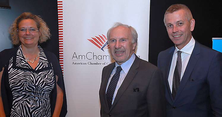 Unter die Gäste mischten sich unter anderen Matthias Albert (Bank Gutmann), Markus Beuchert (Autobank AG), Martin Brodey und Christian Dorda (DORDA Rechtsanwälte), Sherrie Doyon de Toma (UBS Wealth Management), Michael Edelsbrunner (Citibank), Wolfgang Fenkart-Fröschl (Western Union), Marta Haustein (U.S. Embassy), Conor Hayden (Wiener Privatbank), Patricia A. Helletzgruber (Drucker Society), Michael Hilbert (Roland Berger), Klaus Hölbling (Alix Partners), Rudolf Kemler (Roland Berger), Martin Köberl (Procter & Gamble), Sandra Kolleth (Präsidentin AmCham Austria), Norbert B. Lessing (Hilton Hotels & Resorts), Christian Maetz (AT&T), Patricia Neumann (IBM), Friedrich Rödler (Erste Group), Elisabeth Thun-Hohenstein (TNS Networking Services), Martin Winkler (Oracle Austria, designierter Präsident der AmCham Austria) sowie Georg Zanger (Jurist) und viele mehr. (jr)