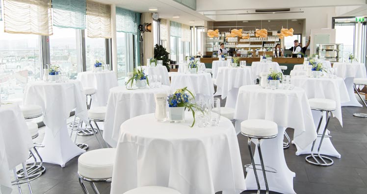 Ob Sie Firmenevents, Geburtstage oder andere Feierlichkeiten planen, das ocean'sky bietet Ihnen für alle Anlässe das perfekte Ambiente. Verzaubern Sie Ihre Gäste mit einen atemberaubenden 360° Blick mitten in der Innenstadt auf das Häusermeer Wiens.