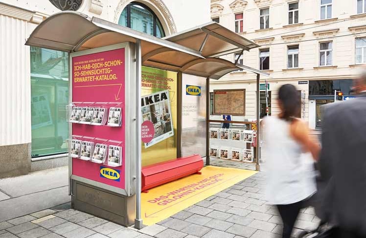 Ikea präsentiert seinen neuen Katalog, der auch begehrtes Sammelobjekt ist, und setzt im Zuge der Bewerbung desselben auch auf eine einzigartige Out Of Home-Werbeform. Eine ganzheitlich gebrandete Wartehalle in der Siebensterngasse 42-44 in Wien Neubau. Nicht nur aufgrund des Standortes mitten in der Stadt ist Aufsehen garantiert, auch die kreative Gestaltung des Bim-Wartehäuschens ist ein Eyecatcher.