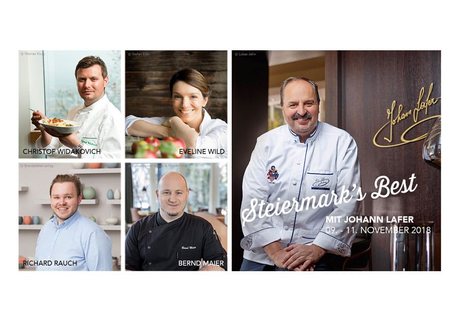 Nun hat der sympathische Sternekoch unter dem Motto „Steiermark’s Best“ die Creme de la Creme der heimischen Kochszene, nämlich Eveline Wild, Richard Rauch, Christof Widakovich und Bernd Maier um sich geschart, um den Gästen des Falkensteiner Hotel Schladming ein kulinarisches Genussprogramm der Extraklasse zu bieten.