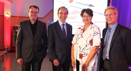 Unter diesem Titel referierte der Trendforscher Andreas Reiter - ZTB Zukunftsbüro beim siebenten "Talk bei Henkel". "Die Industrie wird immer der Motor einer innovationsgetriebenen Standortpolitik sein. Und es gewinnen diejenigen Metropolregionen, denen es gelingt, Produktion, Forschung & Entwicklung sowie kreative Dienstleistung zu vernetzen, um damit Talente anzuziehen", so Reiter. Mit dabei Renate Brauner - Vizebürgermeisterin Wien, Albin Hahn - Vorstand Josef Manner Comp. AG, Gastgeber Günter Thumser und einige mehr.