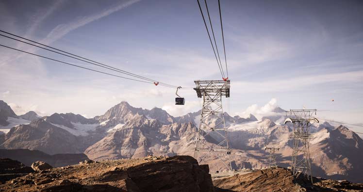 Mit einer Beförderungskapazität von bis zu 2000 Personen stündlich gehören Wartezeiten auf Trockener Steg der Vergangenheit an, die neunminütige Fahrt begeistert mit erstklassigem Komfort und einem fantastischen Rundumblick auf das hochalpine Panorama Zermatts.