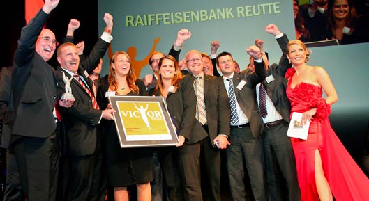 Für exzellente Leistungen in der strategischen und dynamischen Neuausrichtung ihrer Geschäftsmodelle, sowie in der Kunden- und Mitarbeiterorientierung hat emotion banking Kreditinstitute mit dem internationalen victor Award ausgezeichnet. Die festliche Gala fand in Baden bei Wien statt. Den begehrten Titel "Bank des Jahres" sicherte sich die Volksbank Mosbach mit über 400 Punkten in vier von fünf Kategorien und insgesamt über 2.100 Punkten. "Wir haben uns nach der letzten victor Nutzung 2009 auf den Hosenboden gesetzt und uns gesagt, dass wir es schaffen müssen, uns in allen Bereichen weiterzuentwickeln und das haben wir heuer geschafft", so Klaus Saffenreuther von der Volksbank Mosbach.