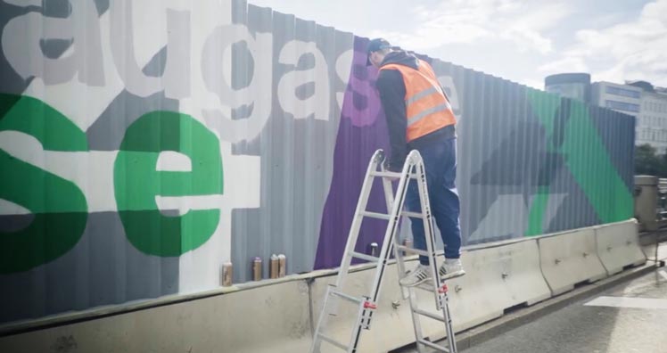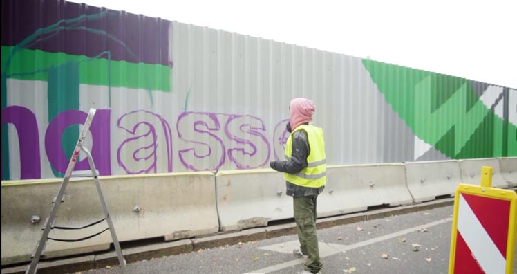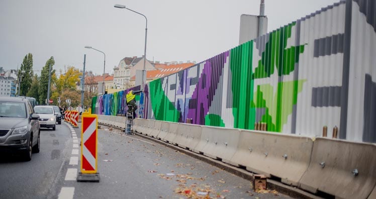 Um die Baustellenwand aus Metall, die aktuell die flussseitige Flanke der Linken Wienzeile aufgebaut ist, optimal zu nutzen, entschieden sich die Wiener Linien zu einem Out Of Home Gestaltungsprojekt in Kooperation mit dem Kunstverein Calle Libre, der Graffiti Agentur Concrete und der Kreativagentur Warda Network.