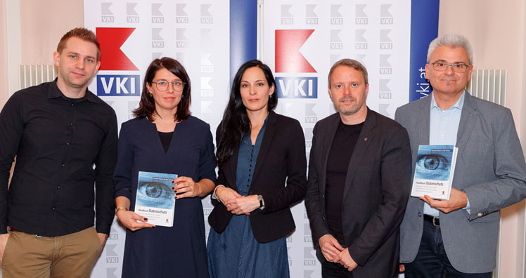 Bei der Vorstellung des Ratgebers vergangene Woche waren die Autoren Natalie Oberhollenzer und Gernot Schönfeldinger, sowie VKI-Geschäftsführer Rainer Spenger, Petra Leupold, Leiterin der VKI-Akademie und der Datenschutz-Aktivist Max Schrems anwesend.