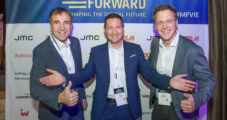 Neben der Begrüßung durch JMC-CEO Josef Mantl, Fachgruppe Ubit-Obmann Martin Puaschitz und Außenwirtschaft Austria Leiter Michael Otter wurde die zweite Auflage der Wiener Moving Forward Conference von Digitalministerin Margarete Schramböck eröffnet, die in Ihrer Ansprache besonders auf die generationsbezeichnende digitale Transformation zu sprechen kam.