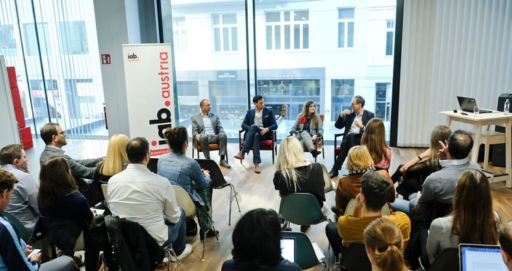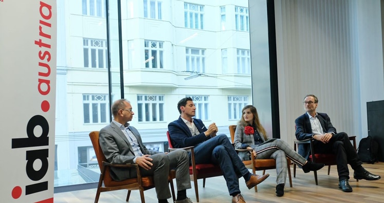 Zur Präsentation der Ergebnisse tauschten sich Marketingstratege Christoph Seidl (marketingstrategie.at), Social-Media-Marktforscher Markus Zimmer von Buzz Value, iab-Vorstand und -Geschäftsführer Stephan Kreissler, iab-Vorstand und e-Dialog Director Customer Innovation Cosima Serban und Integral-Geschäftsführer Bertram Barth in einer Impuls-Diskussion aus. (rb)