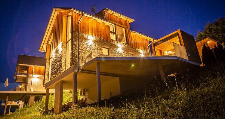 Der Liebreiz der Südsteiermark fasziniert das ganze Jahr über. Ob Frühlingsgefühle, Summerfeeling, der goldene Herbst oder die mystischen Weinberge im Winter. Sanfte Hügel, Weingärten, Wälder und mittendrinn das verträumte Golden-Hill, zwischen einem Lavendelhügel und den Weinbergen des Sausals. Das Private Hideaway bietet jeglichen Luxus, aus einem alten Bauernhaus wurde das 180 m² romantische Landhaus Steinfuchs für zwei bis sechs Gäste, auf dem Fundament des ehemaligen Wirtschaftsgebäudes entstand das ultimative 250 m² Panorama-Loft exklusiv für zwei, errichtet komplett in Massivholz mit spektakulärer Aussicht aus über 21 Meter Glasfront. Im Juni dieses Jahres kamen drei weitere luxuriöse Country-Chalets (120 m²) ebenfalls aus Vollholz dazu.