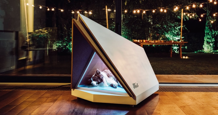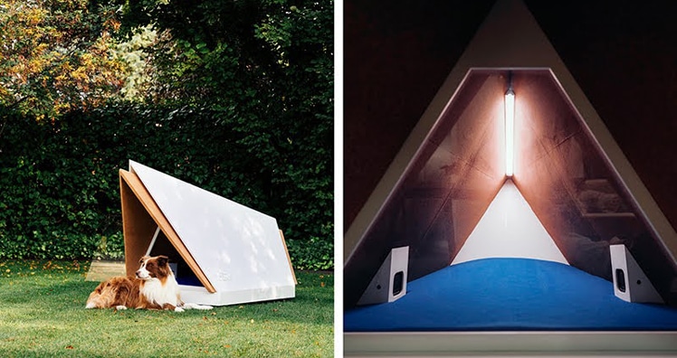 Die im Design futuristisch anmutende, mit einem Spitzdach versehene Hundehütte von Ford hat zudem eine automatische Glastür, die den Innenraum nach außen hin abschließt. Eine an der Decke angebrachte Lampe kann bei Bedarf Licht spenden.