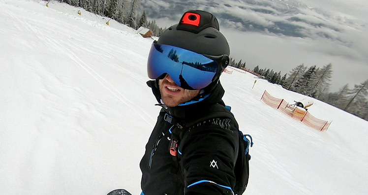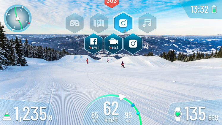 Über eine eingebaute Minikamera wird die Umgebung auf der Piste erfasst, am Visier kann der Nutzer zahlreiche visuelle Daten wie Geschwindigkeit, Höhenmeter und ein Navigationssystem abrufen. Eingebaute Kopfhörer und ein Mikrofon ermöglichen die Live-Kommunikation mit Freunden per Text Messaging, Audio oder Video. Besonders nützlich: Ein SOS-Knopf, der in Notsituationen lebensrettend sein kann.